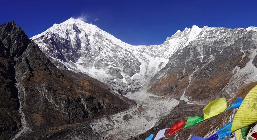 Langtang Valley trek route takes trekkers to an altitude of more than 5,000 meters or 16,404 feet above sea level. Tserko Ri at 5000 meters or 16,404 feet, is the highest point the trail will take trekkers to, from where spectacular sunrise over the Himalayas can be witnessed. Trek to Langtang allows trekkers to witness the unique Buddhist cultures of the Tamang and Sherpa people, the main inhabitants of Langtang. Kyanjin Gompa located near Tserko is an ancient Buddhist monastery. During the trek, panoramic views of peaks like Dorje Lakpa (6,990m/22,933ft), Langtang Ri (6,370m/20,898ft), Langtang Lirung (7,245m/23,769ft) and many other prominent mountain peaks can be seen.