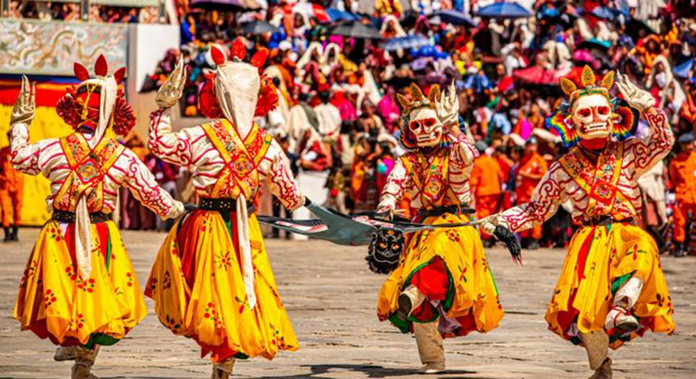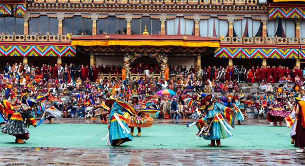 Thimphu Tshechu is celebrated to commemorate the birth of Guru Rinpoche, who is believed to bring Buddhism and its teaching in Bhutan. There are multiple mask dance performance throughout the Tshechu by laymonks. Guru Tshengye dance, performance by Astaras Shawo Shachi Dance, Durdang Chham, and Bardo Raksha Mangchham are major dance performance during Thimphu Tshechu. Every dance performance narrates the tales and story with deep philosophical insight about life, religion and belief. It is believed that witnessing Thimphu Tshechu and those religious performance will cleanse the person off bad karma. Along with these dances, there are folk musical performances, renditions of cultural musical instruments and many more.